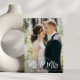 Una tarjeta de foto de invitación boda de moda con una imagen de recién casados y escritura con letras a mano en el pincel. El texto se puede personalizar junto con la imagen de la novia y del novio y el color posterior.
