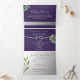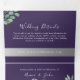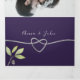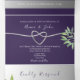 Elegante invitación de boda con letra de caligrafía moderna, vegetación de acuarela morada con corazón de cuerda de plata falsa simple y foto personalizada de la pareja.