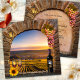 Invitación de boda con un arco romano clásico con uvas, una linterna y girasol con en la parte posterior una pintura de un viñedo con vino y copas. Hermoso para una boda de viñedo o bodega o celebración con tema de vino. Esta invitación tiene una tarjeta de RSVP coincidente.