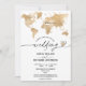 Invitación de boda Destino Oro Mapa Mundial Corazó