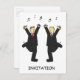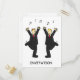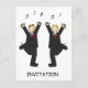 Dos novios de dibujos animados con trajes bailando. La imagen está colocada sobre un fondo blanco crujiente y acompañada por la palabra 'Invitación'.