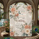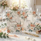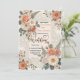 Anuncie su elegante asunto con este diseño sofisticado que presenta un efecto de relieve falso estampado. La obra de arte romántica destaca una corona de rosas de durazno y ranunculus de coral en un estilo de arte de papel 3D, impreso plano para simular textura de alta gama y profundidad de sombra. Fácil de personalizar con sus detalles para una estética de lujo atemporal.