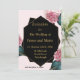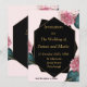 Hermosa invitación de boda con flores negras y rosadas. nombre, horarios, fechas y ubicación totalmente personalizables según tus necesidades