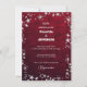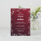 invitación de boda con flores blancas en fondo granate poligonal