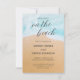 Las hojas de palma y las olas de acuarela hacen que esta sea la tarjeta ideal para una boda en un destino de playa. Etiquetas: boda en la playa, invitación tropical, boda de destino