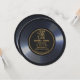 Invitación de boda en vinilo retro negro Guardar la fecha en negro y dorado. El texto se puede personalizar con tus propias palabras. Puedes cambiar las fuentes, tamaños y colores del texto haciendo clic en el botón "editar la herramienta de diseño".