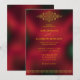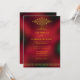 Esta elegante y sofisticada invitación de boda cuenta con elementos gráficos en estilo árabe/índio. Es totalmente personalizable, con gráficos y texto en dorado y un fondo borroso rojo y negro.