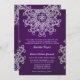 Una hermosa invitación de boda tonificada en JEWEL PURPURA AMETISTA y PLATA con un patrón ornamental de MEDALLÓN de sari exótico inspirado en la India con un diseño de ráfaga de sol floral y loto. Esta elegante y hermosa invitación de boda moderna de estilo indio es perfecta para cualquier ocasión formal con un tema de NOCHES ARABES, ALADINO MARROQUÍ o INDONESIO DE ASIA ORIENTAL. Diseñado por Chrissy H. Studios, LLC. Todos los derechos reservados.