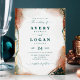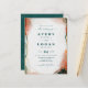 Invitaciones de boda de acuarela etérea abstracta en verde y cobre oscuro. Esta invitación de boda moderna está hermosamente pintada a mano con colores ricos que son perfectos para el otoño. Mostrado en la paleta de colores de boda Dark Teal en los tonos: verde pavo real teal oscuro, cobre oxidado, dorado polvoriento, arboleda de almendros y beige bisque. Con detalles de lámina de brillo metálico falso y una fuente de escritura con colas hermosa y característica, la colección de boda de acuarela etérea seguramente hará que su boda sea memorable y hermosa.