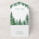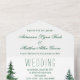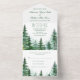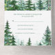 Invitaciones de boda de abeto con hermoso bosque de acuarela de abetos en un fondo de color elegido por usted. Estas hermosas invitaciones de boda de abeto rústicas se personalizan fácilmente para su evento simplemente agregando sus detalles en el estilo de fuente y redacción de su elección.