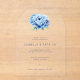 Esta elegante invitación de boda presenta una ilustración bellamente detallada de peonías azules en la parte superior, creando un punto focal con sus suaves gradientes y pétalos realistas. El fondo gris atenuado realza los tonos azules vibrantes y proporciona un telón de fondo sofisticado para la tipografía clásica serif que sigue. La disposición es equilibrada y simétrica, con amplio espacio negativo alrededor de cada elemento, transmitiendo una estética formal y refinada perfecta para una ocasión especial. El diseño captura una atmósfera de celebración y anticipación, lo que lo hace ideal para parejas que buscan agregar un toque de elegancia a sus invitaciones de boda.