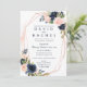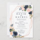 Invitación de boda floral azul marino sonrojado