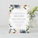 Invitación de boda floral azul marino y rubor