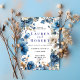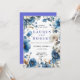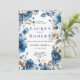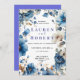 Una delicada tarjeta de invitación de boda floral azul polvoriento con elegantes acentos blancos, perfecta para establecer un tono romántico para tu día especial. Este diseño personalizable te permite personalizar nombres, fechas y detalles, haciéndolo único.