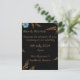 Este diseño de invitación de boda elegante presenta una llamativa combinación de elementos florales dorados y azules sobre un sofisticado fondo negro. El intrincado arreglo floral muestra una variedad de flores y follaje en ricos tonos dorados y vibrantes matices azules, creando un contraste visualmente impresionante. Perfecto para una boda lujosa y memorable, este diseño emana opulencia y estilo, marcando el tono para un evento inolvidable.