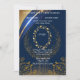 Invitación de boda floral azul y dorado elegante