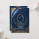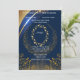 Haz una declaración sofisticada con esta invitación de boda floral azul y dorada que presenta un fondo azul rico adornado con flores botánicas doradas lujosas. Perfecta para temas de boda clásicos, reales o modernos, este diseño personalizable te permite personalizar nombres, fechas y detalles del lugar mientras creas un conjunto de papelería premium coordinada.