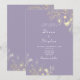 Elegante, vintage, boho, invitación de boda de lavanda púrpura con encaje floral plateado y dorado y letra simple.