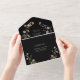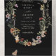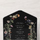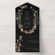 Invitación de boda floral boho negra todo en uno
