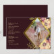 Esta romántica invitación de boda borgoña presenta flores dibujadas a mano en tonos suaves de rubor, melocotón y ciruela, combinadas con elegantes acentos dorados y una foto personalizada enmarcada en un diamante geométrico. La rica paleta de tonos joya la hace perfecta para bodas de otoño, lugares de viñedo o celebraciones rústicas románticas. Una hermosa manera de mostrar su amor con calidez y estilo artístico.