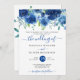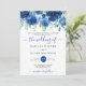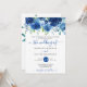 Invitación de boda floral de acuarela azul marino, con un fondo texturizado de lavado peri muy ligero. Personaliza nombres, fechas e información.