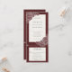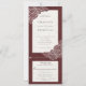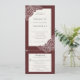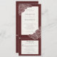 Combinación de invitación de boda con amapolas blancas dibujadas a mano sobre fondo rojo texturizado de terciopelo.