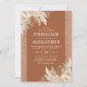 Invitaciones de boda boho elegantes con hojas de palma secas de acuarela del desierto, hierba de Pampas, flores, brillo de color óxido y una plantilla de boda moderna.