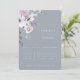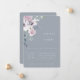 Hermosa disposición floral de jardín en acuarela de anémonas, rosas, eucalipto y follaje en tonos de moda de violeta, rosa y verde. El color de fondo que se muestra es azul polvoriento, se puede personalizar.