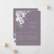 Hermosa disposición floral de jardín en acuarela de anémonas, rosas, eucalipto y follaje en tonos de moda de violeta, rosa y verde. El color de fondo que se muestra es violeta púrpura, se puede personalizar.
