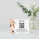 La tarjeta de respuesta de boda minimalista moderna con su código QR incluye floral de otoño en acuarela. Rosas naranjas, rosas melocotón, rosas doradas, rosas rosadas, suculentas de color ciruela, rosas blancas, hojas de eucalipto y otra vegetación botánica. Parte posterior en melocotón.