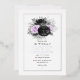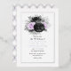 Invitación de boda floral lila y negra con reverso de cuero capitoné. Tenga en cuenta que las flores no son de papel de aluminio real.