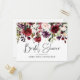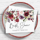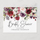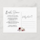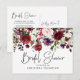 Tarjeta postal de despedida de soltera floral de vino tinto rosa rosado elegante y bonita. En el otro lado está la información de la ducha que se puede personalizar.