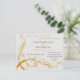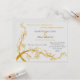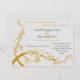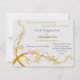 El trabajo de pergamino dorado con una impresión floral es el telón de fondo para esta invitación elegante pero informal. Se proporciona mucho texto personalizable para la información de su fiesta o boda.