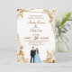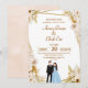 Invitación de boda floral dorada y beige