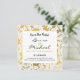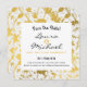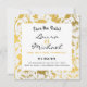 Invitación de boda floral elegante dorada. Esta es una invitación de boda moderna con flores elegantes doradas en la parte posterior. También están disponibles etiquetas de RSVP y dirección de devolución coincidentes.