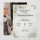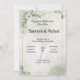 una elegante invitación de boda floral con flores verdes y blancas.