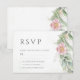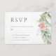 Hermosas tarjetas de respuesta de boda con eucalipto en acuarela floral rosa y hojas doradas.