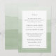 Esta hermosa y elegante invitación de boda de color verde salvia presenta un fondo ombre pintado a la acuarela con un borde blanco y el monograma de la boda de la novia y el novio. La parte trasera de la invitación incluye el mismo fondo de acuarela de salvia. Encuentre artículos coincidentes en la Colección de Boda de Acuarela Ombre de Salvia.