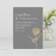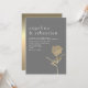 Invitación de boda gris chic simple, moderna, minimalista con flor de rosa dorada elegante y dorso de lámina. Tendencia, estilo, con glamour contemporáneo.