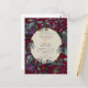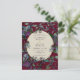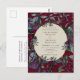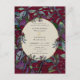 Esta tarjeta postal de invitación de boda color burgundy presenta flores moradas y rojas, vegetación y un óvalo enmarcado en dorado y letra dorada. Personalice con los detalles de su evento de boda.