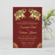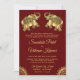 Sorprende a tus invitados con esta elegante invitación de boda india que presenta elefantes bellamente decorados contra un fondo rojo oscuro. Simplemente agrega los detalles de tu evento en esta plantilla fácil de usar para hacer que sea una invitación única. Esta tarjeta es totalmente personalizable. Todos los textos son editables y el color de fondo se puede cambiar fácilmente a lo que mejor se adapte a ti. Voltea la tarjeta para revelar una textura de pan de oro falso en el reverso de la tarjeta.