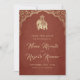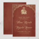 Invitaciones de Boda Indianas con un diseño de Ganesha en hoja dorada sobre un fondo rojo seguramente emocionarán a tus invitados. Consejo de diseño: Utilice letras mayúsculas para el texto que no sea script. ¡Mejora el tipo de papel a Pearl Shimmer para un look extra elegante!