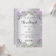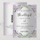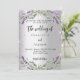 Una invitación de boda moderna y elegante. Un fondo con apariencia de plata falsa con brillo violeta falso, destellos, flores de lavanda y vegetación de eucalipto. Personaliza y añade tus nombres y los detalles.