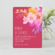 Haz una declaración audaz con esta vibrante invitación de boda que presenta flores expresivas dibujadas a mano en tonos de magenta, rosa, coral, naranja y púrpura. El fondo rojo-magenta saturado establece el tono para una celebración festiva y llena de color, mientras que el monograma personalizado en la parte posterior añade un toque moderno final. Perfecto para bodas de verano o principios de otoño, celebraciones LGBTQ+ o cualquier pareja que busque papelería de boda alegre y poco convencional.