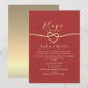 Esta elegante invitación de boda micro presenta un motivo de corazón dorado romántico y tipografía de letra cursiva suave sobre un fondo rojo intenso, invitando a los invitados a presenciar una fuga o ceremonia privada íntima. Un diseño elegante y minimalista ideal para bodas pequeñas, fugas de destino o recepciones modernas con cena a continuación.