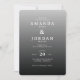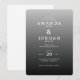 Esta elegante invitación de boda presenta un diseño minimalista con un fondo degradado que transita de gris claro a oscuro, creando un aspecto sofisticado y moderno. La tipografía serif limpia está centrada para una composición equilibrada, lo que mejora la legibilidad y la formalidad. Con su discreta paleta de grises y su impresión digital nítida, la invitación transmite una atmósfera de refinamiento, perfecta para parejas que buscan una estética atemporal y elegante para su día especial.