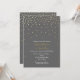 Invitación de boda moderna con puntos de lámina gris y dorada. Personalice la parte delantera y trasera para cualquier evento.