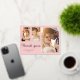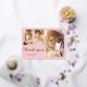 Invitación de boda moderna de color rosa gracias 4 foto. Tarjeta de agradecimiento de boda con lámina dorada. Tarjeta de agradecimiento con lámina dorada. Esta tarjeta de agradecimiento de boda con lámina dorada presenta letra de caligrafía con Personaliza con tus nombres y fecha de boda.