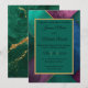 Una línea de invitaciones modernas de lujo con ricos tonos de joya y acentos de oro radiante—donde esmeralda, zafiro y magenta se unen a la sofisticación atemporal.