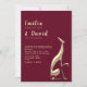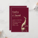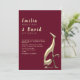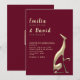 Esta invitación de boda dorada y borgoña presenta una silueta moderna y elegante de una pareja de esculturas abstractas, perfecta para bodas elegantes, artísticas o contemporáneas. El diseño minimalista destaca los nombres de la pareja con una escritura elegante, sobre un fondo rico en borgoña para un tono romántico y lujoso. Ideal para bodas formales en primavera, otoño o invierno.